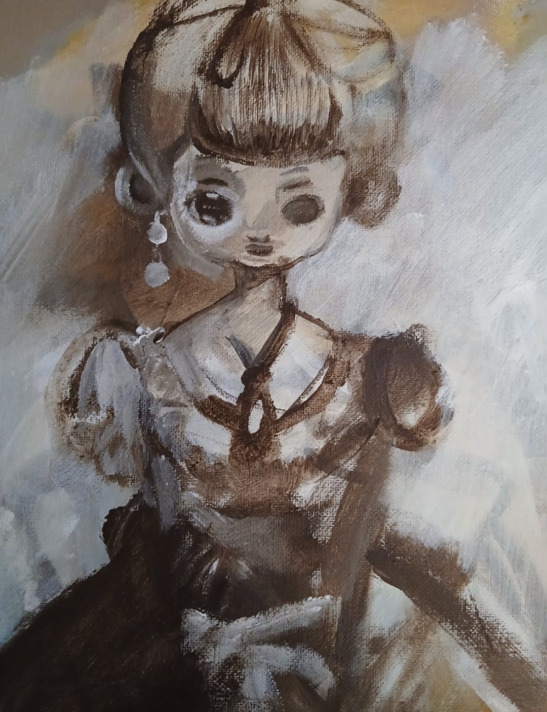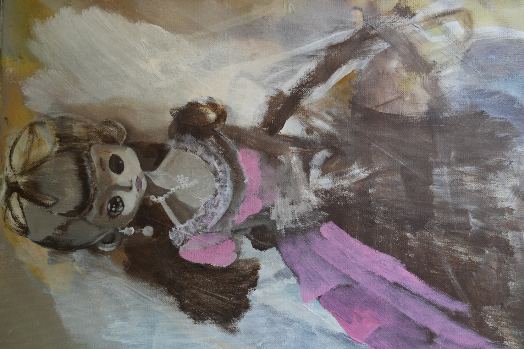 I love seeing the way my acrylic paintings take shape. This is a Sukiyo doll.